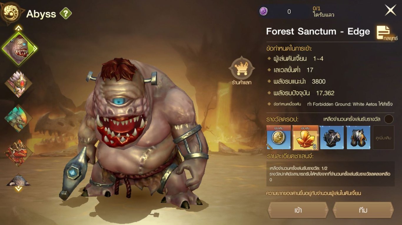 | ดันเจี้ยน Forbidden Land | มาก (ลงเคลียร์ 1 ครั้งเพื่อปลดล็อค Stamina Cap) |