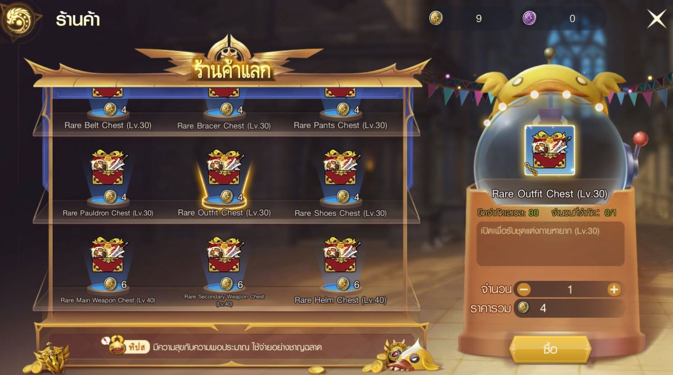 Tips: สำหรับใครที่ฟาร์มแล้วอุปกรณ์สวมใส่ยังดรอปไม่ครบ สามารถนำ Elite Adventurer Medallion มาแลกรับกล่องอุปกรณ์สวมใส่ได้ในร้านค้าแลก ซึ่งจะช่วยให้เราประหยัดเวลาในการฟาร์มไปได้เยอะ โดยแนะนำให้เริ่มแลกในช่วงเลเวล 35 ขึ้นไปเพื่อไว้ต่อสู้กับดันเจี้ยน Lair